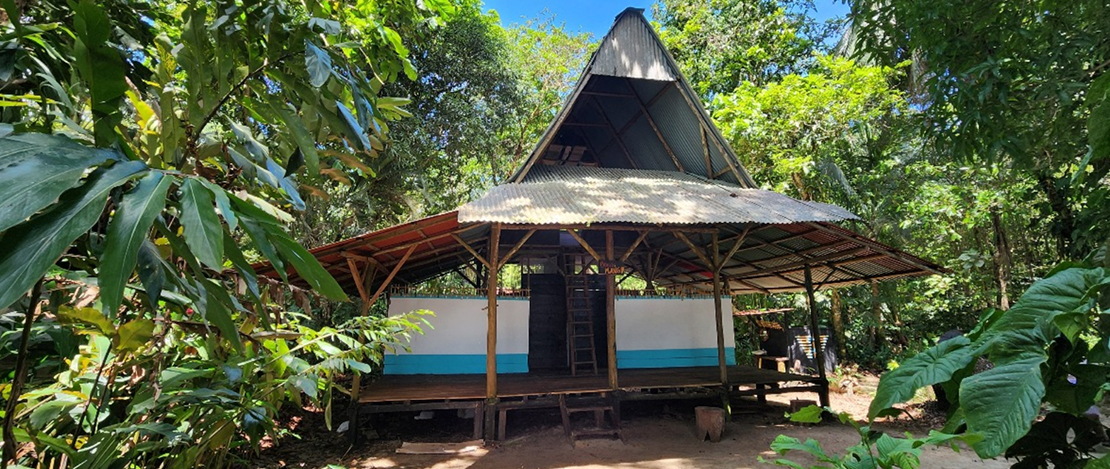Habitación con cama doble en medio de la selva. Semiprivada (segundo piso de Bohío). Baños ecológicos (secos) compartidos.
